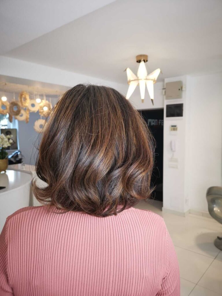 În aceeași măsură, trecerea spre bine-cunoscutul messy-bob se poate face foarte ușor în cazul unei tunsorii medii, putînd fi amplificată cu ajutorul tehnicii de colorare balayage.