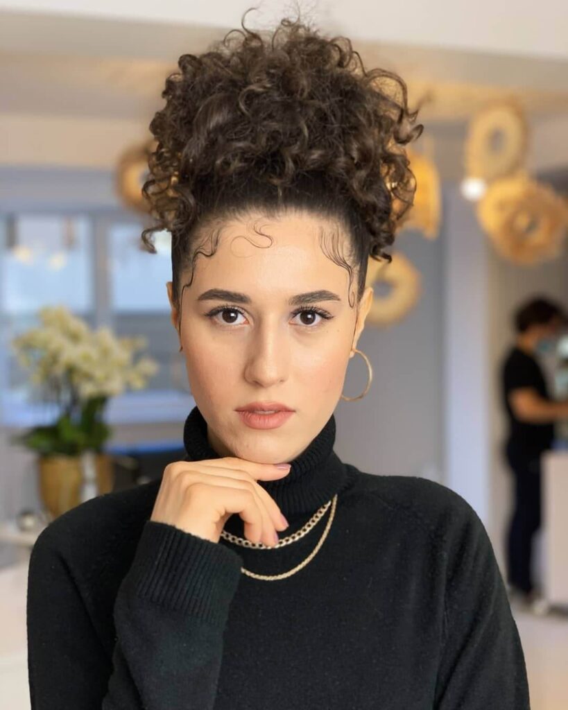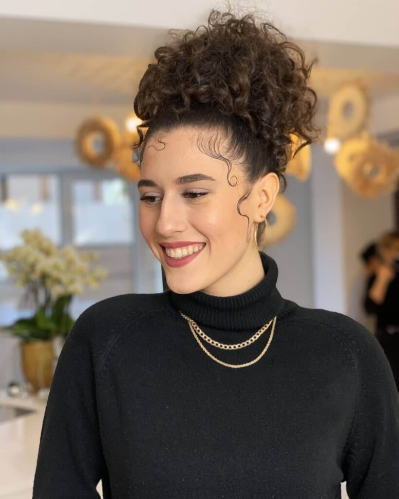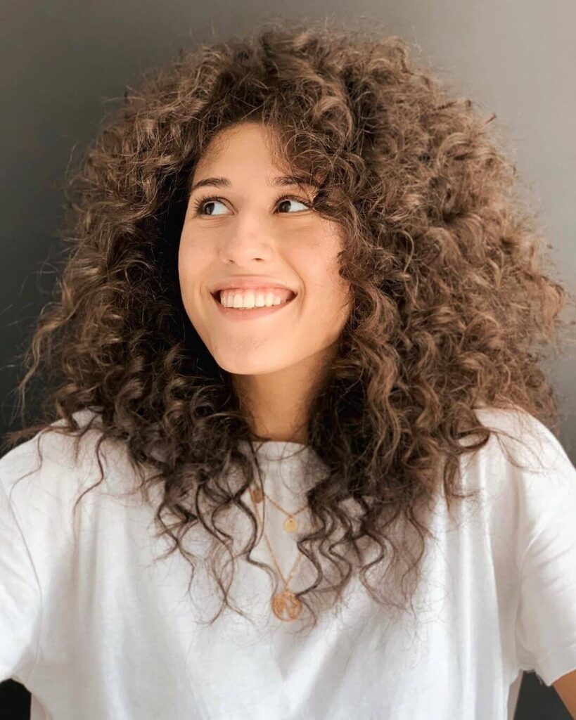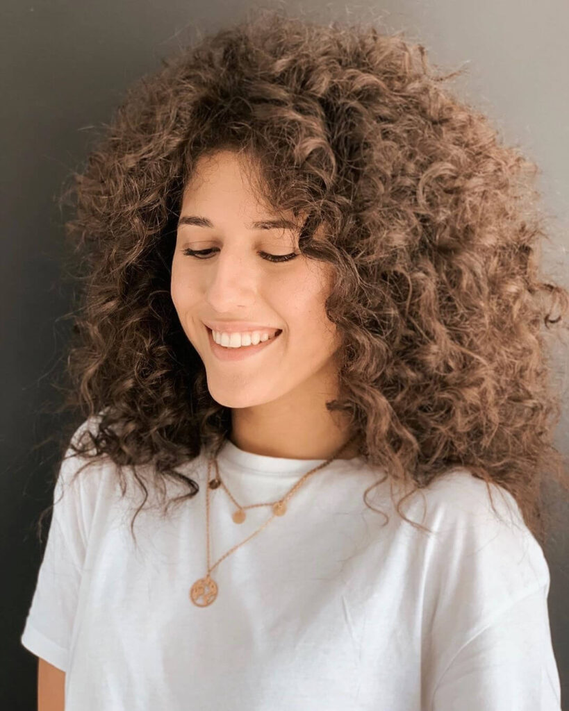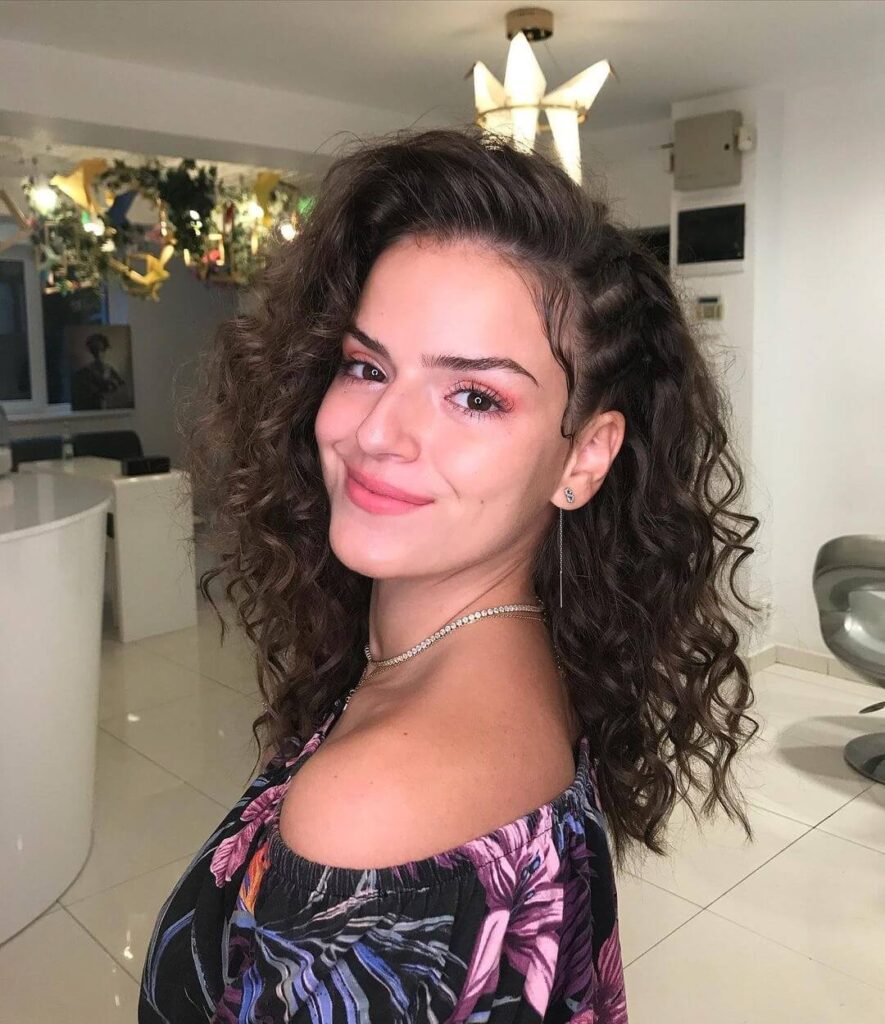 Buclele elastice medii și inelele mai mici se potrivesc perfect cu tunsorile până la umeri. Îți recomandăm coafuri messy sau beach-waves cu un aspect maximum natural.